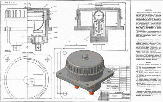 Патрон применяется во входных токораспределительных щитах и других устройствах для предохранения радиотехнических блоков и систем от перегрузки тока от 10 до 30 А. Состоит из съемного предохраниеля 1, вилок с выводами 2, к которым припаивается предохраняемая цепь корпуса 4, крышки 3 и других деталей. Предохранитель 1 состоит из стеклянной трубки, двух ножей, выполненых из стали марки Ст3, и провода 0,20. Выводы вилок 2 изготовлены из латуни марки Л63, а сами вилки - из бронзы марки БрБ2. Устанавливается патрон на лицевой панели. Крышка привязывается леской к ушку, которое крепится на панели винтами, что способствует быстрой смене предохранителя. Патрон 02.29.00.00 сб Патрон 02.29.00.00 спецификация Патрон 02.29.00.00 3d сборка Патрон 02.29.00.00 чертежи Предохранитель 02.29.01.00 сб Предохранитель 02.29.01.00 спецификация Трубка 02.29.01.01 Нож 02.29.01.02 Провод 02.29.01.03 Вилка с выводом 02.29.02.00 сб Вилка с выводом 02.29.02.00 спецификация Вилка 02.29.02.01 Вывод 02.29.02.02 Крышка 02.29.00.01 Корпус 02.29.00.05 Пружина 02.29.00.07