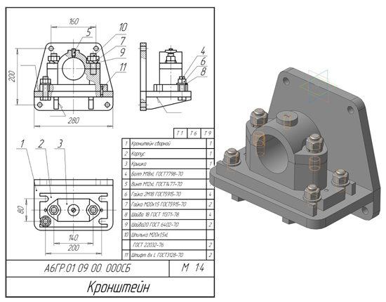 Кронштейн А6ГР.01 09 00.000 3d сборка