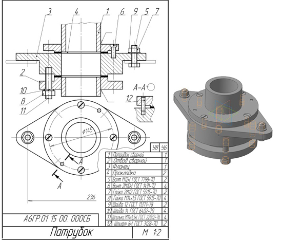 Патрубок А6ГР.01.15.00.000 3d сборка