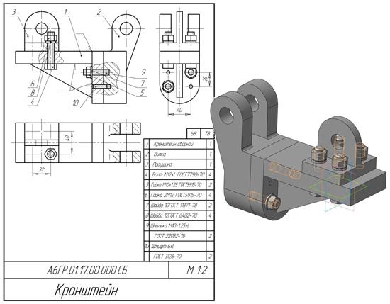 Кронштейн А6ГР.01.17.00.000 3d сборка