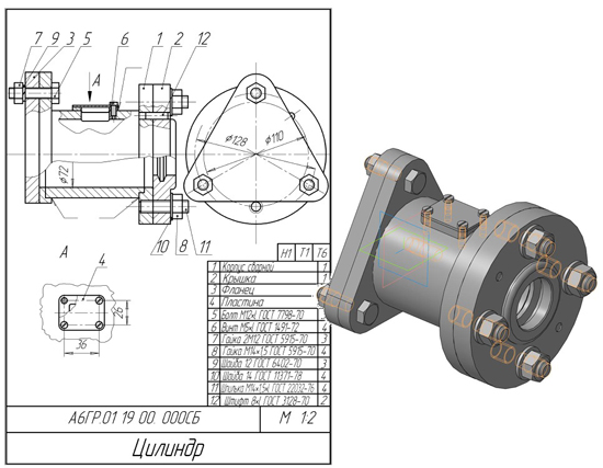 Цилиндр А6ГР.01.19.00.000 3d сборка